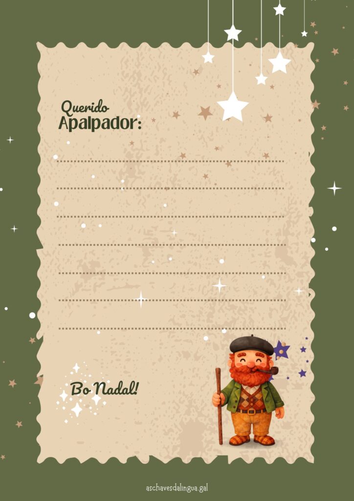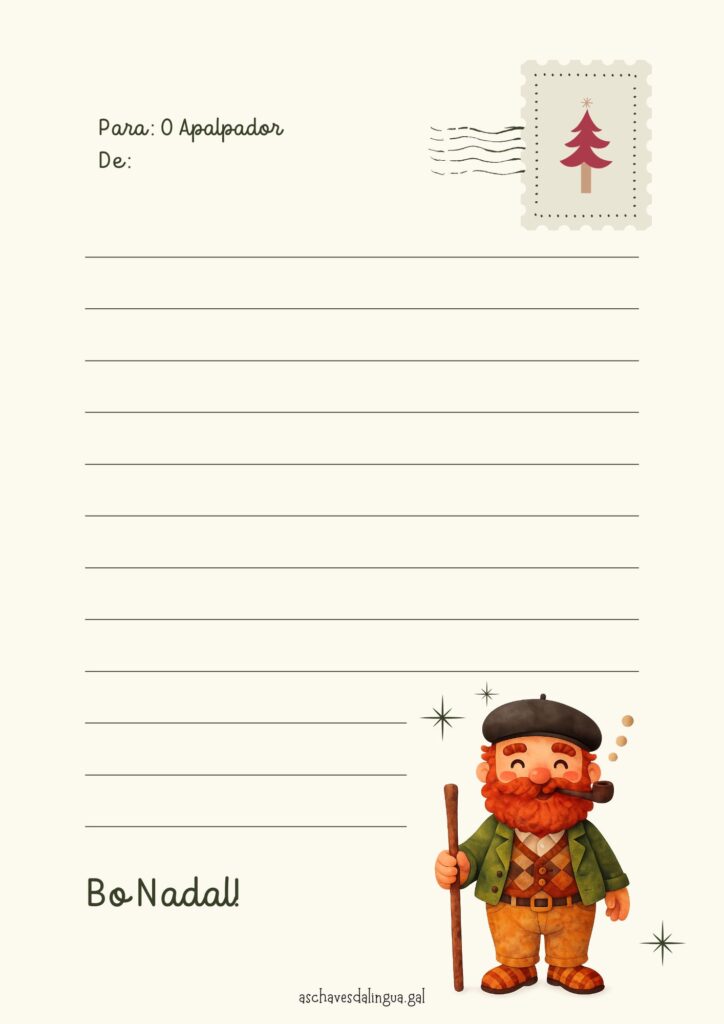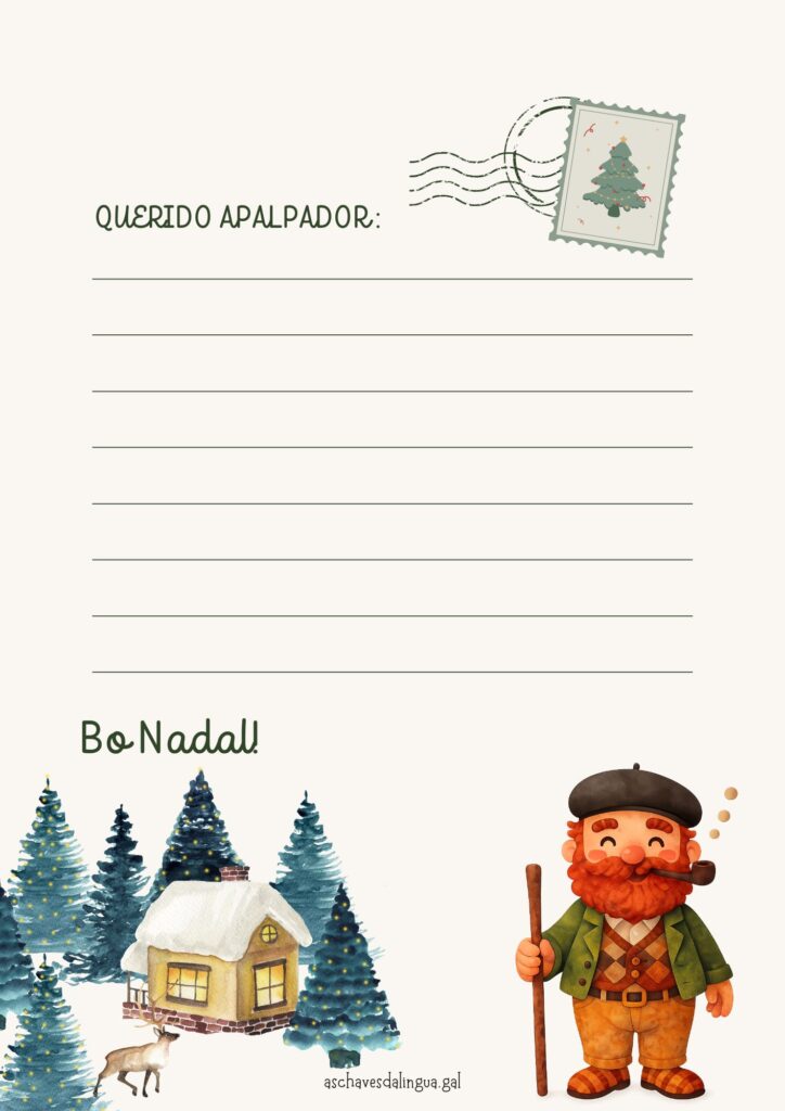 A seguir, tes diferentes cartas ao Apalpador listas para descargar. Escolle o deseño que máis che guste e imprime o PDF para escribir a túa mensaxe de Nadal ao noso carboeiro.